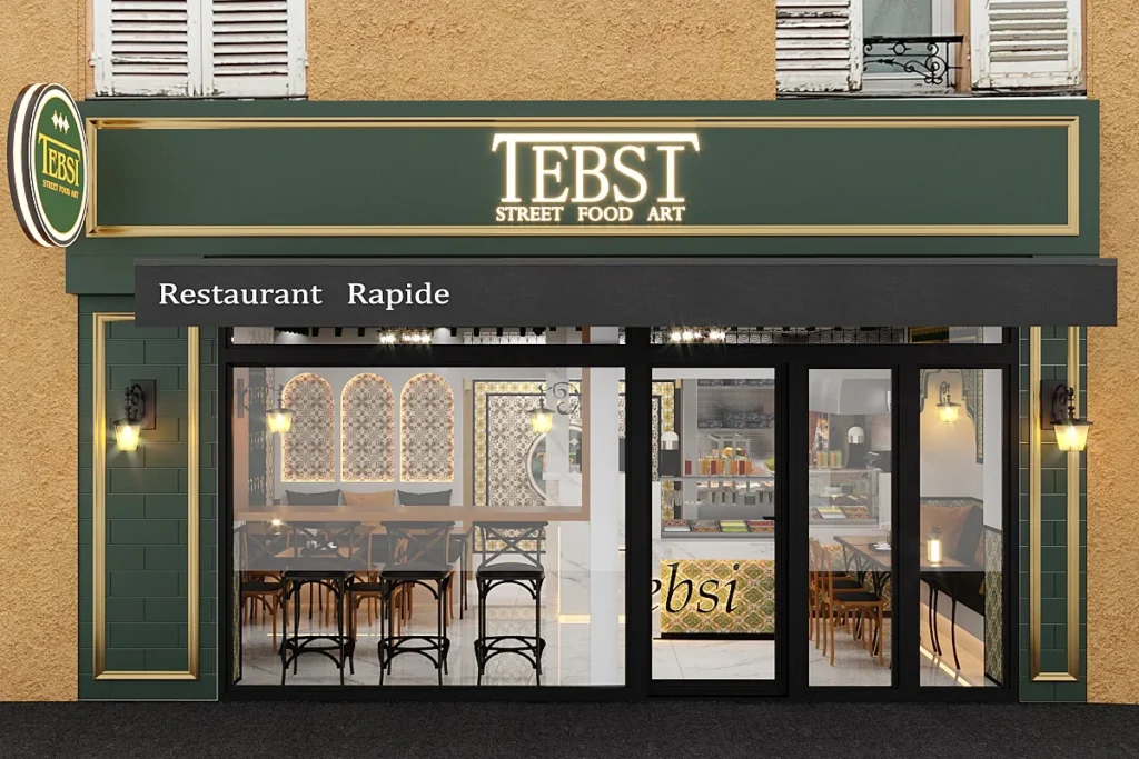 Ce projet a transformé un petit restaurant tunisien de 43 m² en un lieu à la fois moderne et empreint de tradition, inspiré de l’architecture et des couleurs de la médina de Tunis. Les matériaux, livrés directement de la capitale, et les faïences « Affset Essid » apportent charme et authenticité à l’ensemble, tout en modernisant l’image de l’établissement.